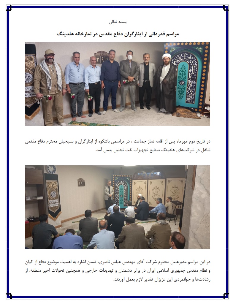مراسم قدردانی از ایثارگران دفاع مقدس در نمازخانه هلدینگ